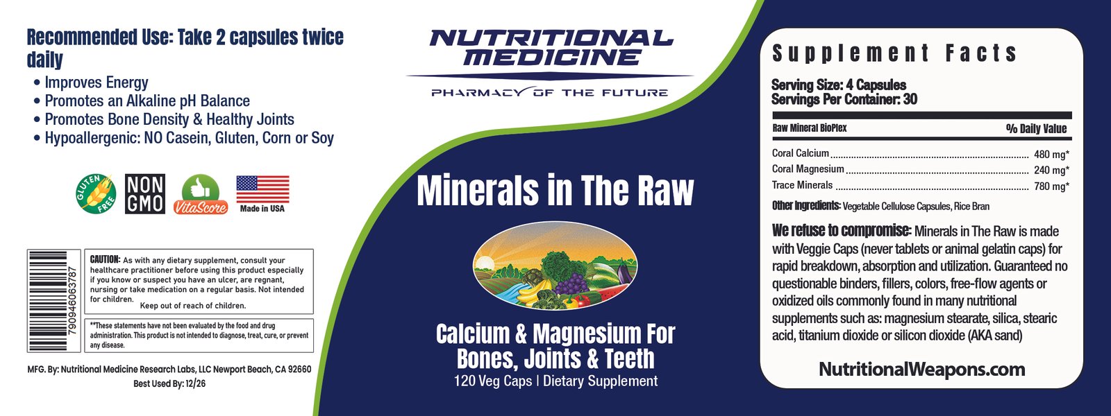 Minerals in The Raw provides all the minerals to support the body’s beneficial alkaline pH for whole body health, including the bones, joints, teeth, and an alkaline pH.